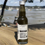 Piments frais de Saint-Pol-de-Léon*(40%), eau*, vinaigre*, sucre*, algues wakamé et nori bretonnes* (13%), échalotes*; sel*, houblon, trèfle, charbon actif, stabilisant : gomme naturelle végétale de Xanthane*.